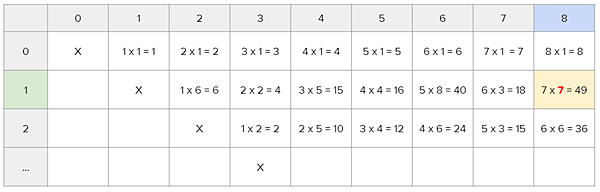 (雖然是只有表格的一半,應該要除以二,但時間複雜度是不在意常數 1/2 的)