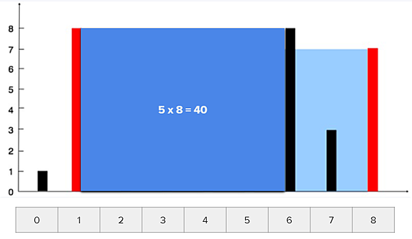從最外面開始的話,得到的面積為 8,寬度是最大(8)沒錯,但高度(1)小得可憐,