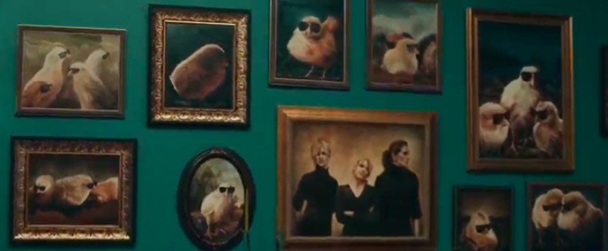 對比著前一個專輯中的 Look What You Made Me Do 的這一幕,底下全是她的 robot (i.e. fake) friends