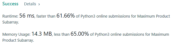 也就是要找到一個 subarray 其所有數字相乘可以得到最大的數字,不須回傳 subarray,只要找到那個最大值就好!